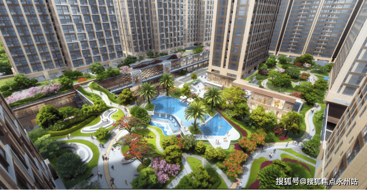 园林景观设计:项目配套约5.3万㎡园林和约3万㎡大型空中花园,以"凤凰"为主题打造景观节点。园林设计注重生态性和观赏性的结合,设置了多个休闲空间,包括戏水池、健身休闲区、儿童活动场、架空层休闲泛会所等,满足全龄段业主的休闲需求。