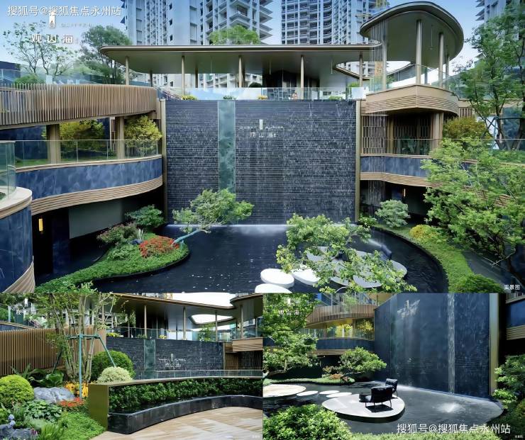 建筑设计由国际团队操刀,采用现代简约风格,外立面以铝板 + Low-E 玻璃幕墙为主,搭配台地式园林,打造“山居秘境”社区。