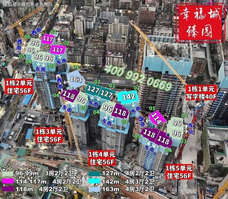 01-01地块:容积率8.81,绿化率40.01%,规划4栋56层住宅+1栋40层办公,总户数980户(可售861套)。