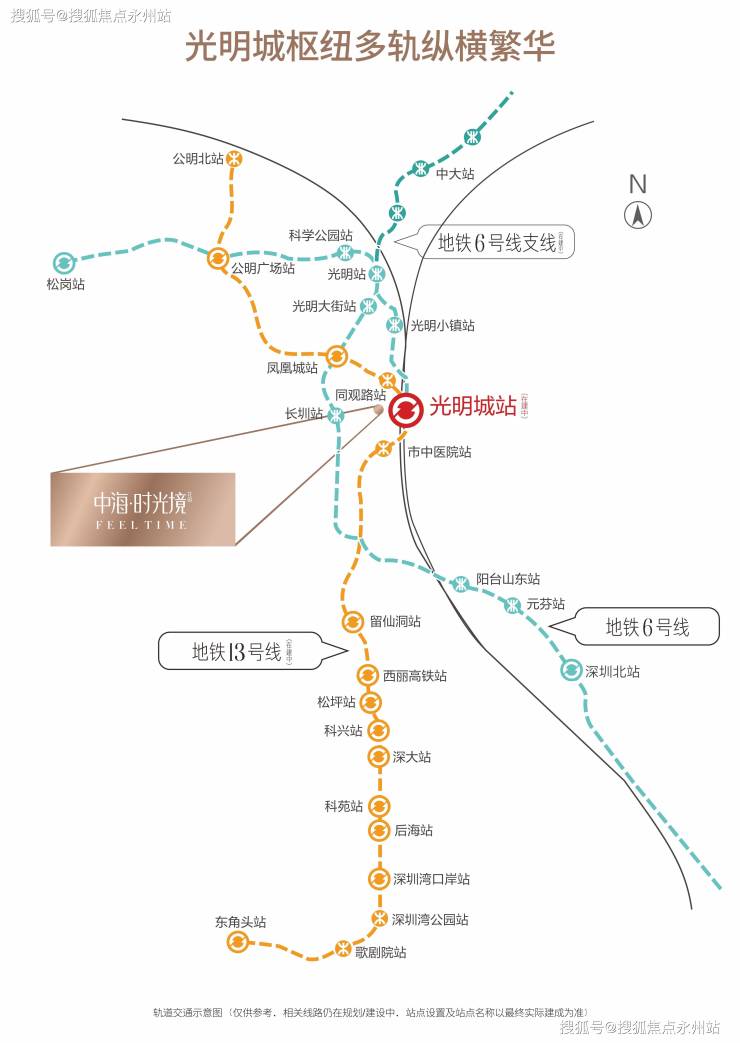 1、13号线二期北延光明城站约400米,预计2025年建成通车,届时光明将直通南山。