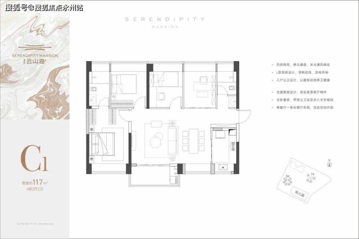 建面约117㎡横厅4房2厅2卫,与116㎡同个面积在横厅设计,自然是可以满足南北通透的需求。
