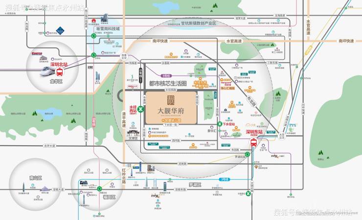 项目位于龙岗区吉华街道华龙路与水径路交汇处东南侧,地处布吉水径板块核心,属于深圳都市核心区扩容范围(含坂田、布吉、吉华、南湾街道)。开发商为深圳市大靓置地有限公司,由海心投资与大靓合作股份公司联合控股,虽非传统品牌房企,但股东具备本土开发经验,项目已实现准现楼状态。