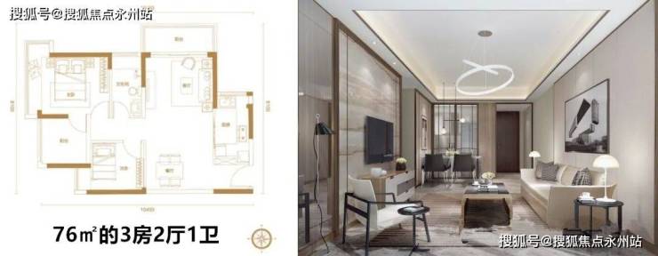 76㎡3房2厅1卫:客厅开间3.5米,南北通透户型,临路可看大运中心景观,具有良好的通风采光效果,布局科学合理。