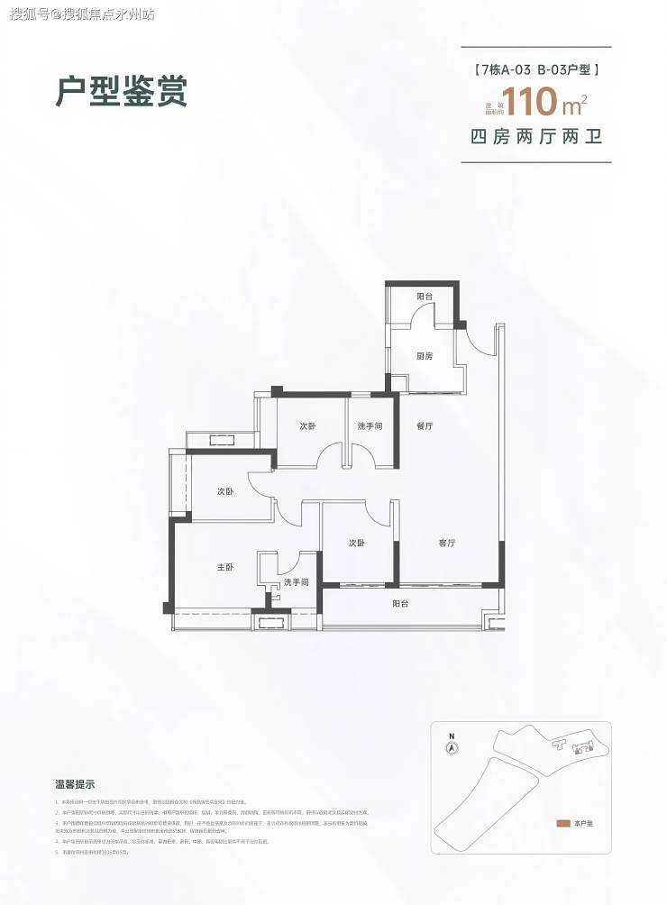 110㎡四房两卫(南北通双阳台,毛坯总价约 480 万)
