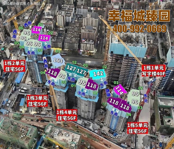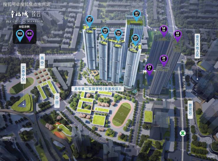 首推的01-01地块中,占地面积约1.93万㎡,建筑面积约23.8万㎡,可计容建筑面积约18.01万㎡,容积率高达8.81,绿化率则达到了40.01%,这里由4栋高达56层的住宅楼组成,其中1栋包含1单元的40层办公楼,2/3/4/5单元的56层住宅楼,规划中还包括一个公交首末站。(深圳龙华幸福城臻园售楼处电话:400-992-0669)