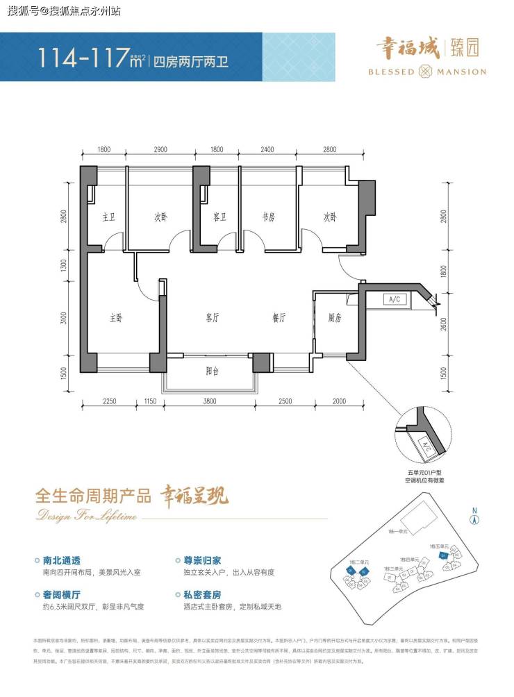 114-117㎡四房两厅两卫(横厅)核心亮点:南北通透 + 横厅巨幕视野