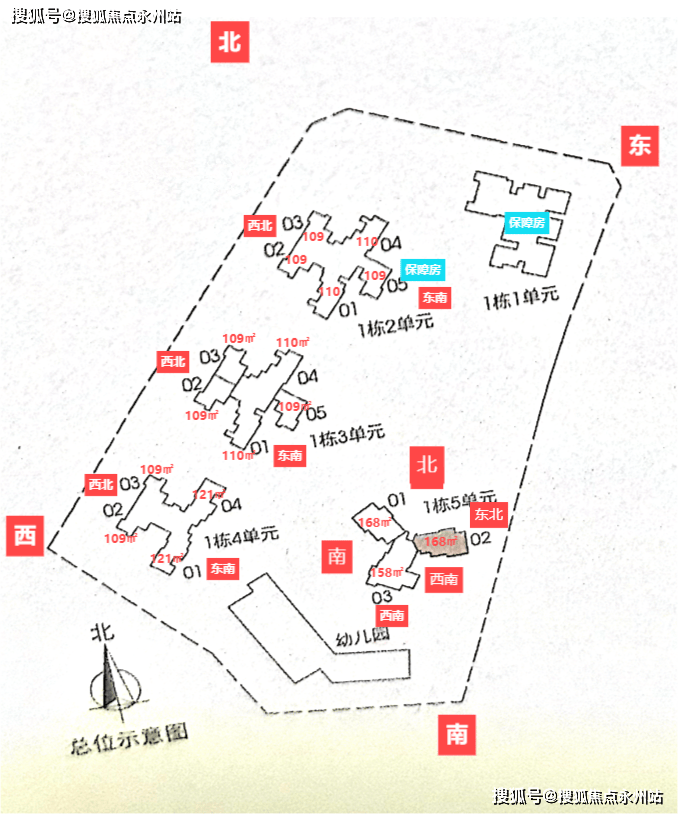 A区主要由5栋住宅组成,二、三、四单元45层,一、五单元46层,其中一单元为保障房,不与其他商品房混在一栋楼里,朝向大都是西南/东南向,少数腿正南向,三单元15楼以上及四、五单元为本次推售楼栋,面积109~169㎡的三-四房,另有12套顶楼复式
