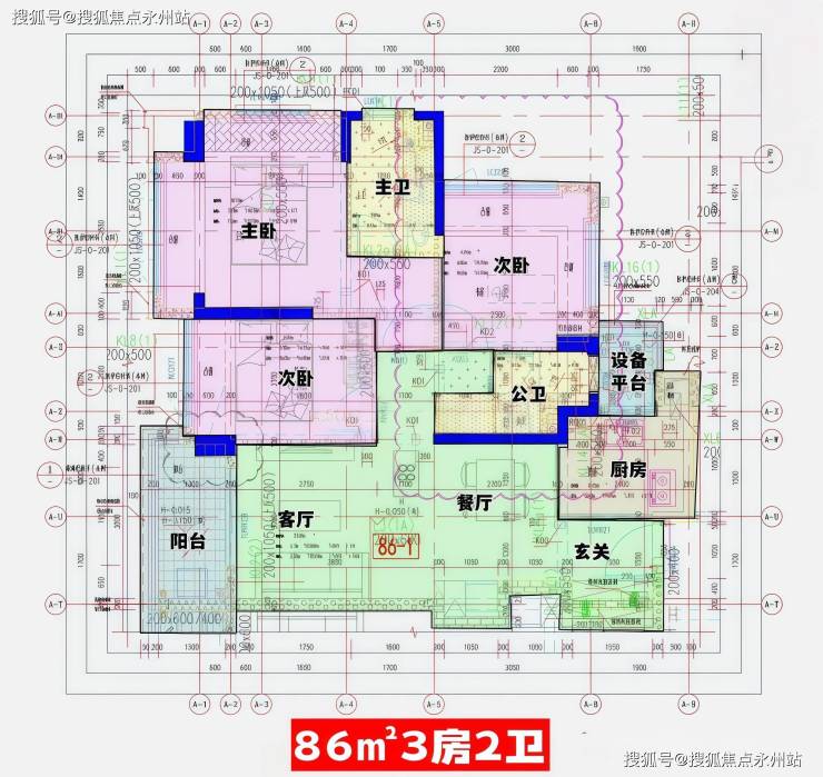 86㎡的3房2厅2卫,设计的是经典竖厅格局,进门入户玄关,客厅3.4米开间,LDKB一体化,S墙设计预留冰箱卡槽位,动静分区,