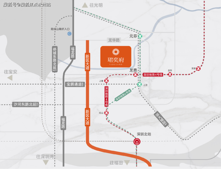 距离地铁4号线龙胜地铁站约500米,两站即是交通枢纽深圳北站,通达全城,轨道交通出行便捷。