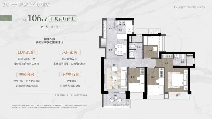 106平,南向景观四房