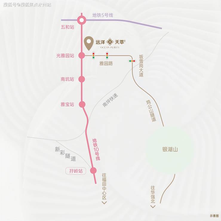 远洋·天萃世纪雅园(原名:天璞世纪雅园)位于龙岗区坂田街道,紧邻地铁10号线光雅园站B出口。
