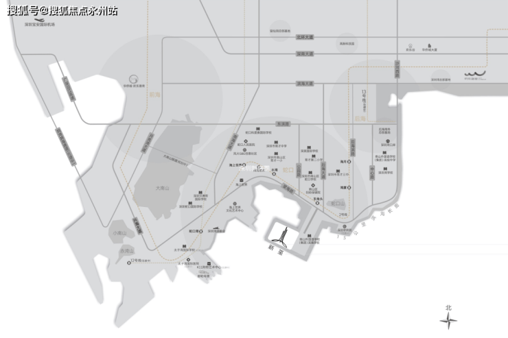 华侨城新玺位于南山区蛇口街道湾厦路最南端,距2号线东角头站约900米,南、西、北三面临海。
