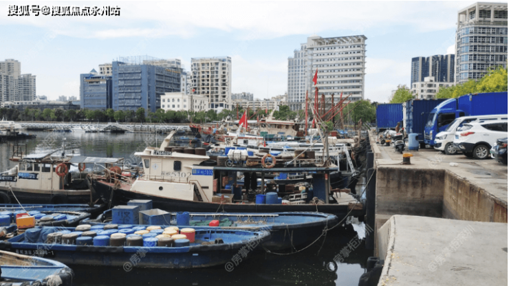 项目原是渔人码头旧改项目而来,时至当日,码头还散乱地停留着不少渔船,与周边齐整的建筑形成鲜明反差。