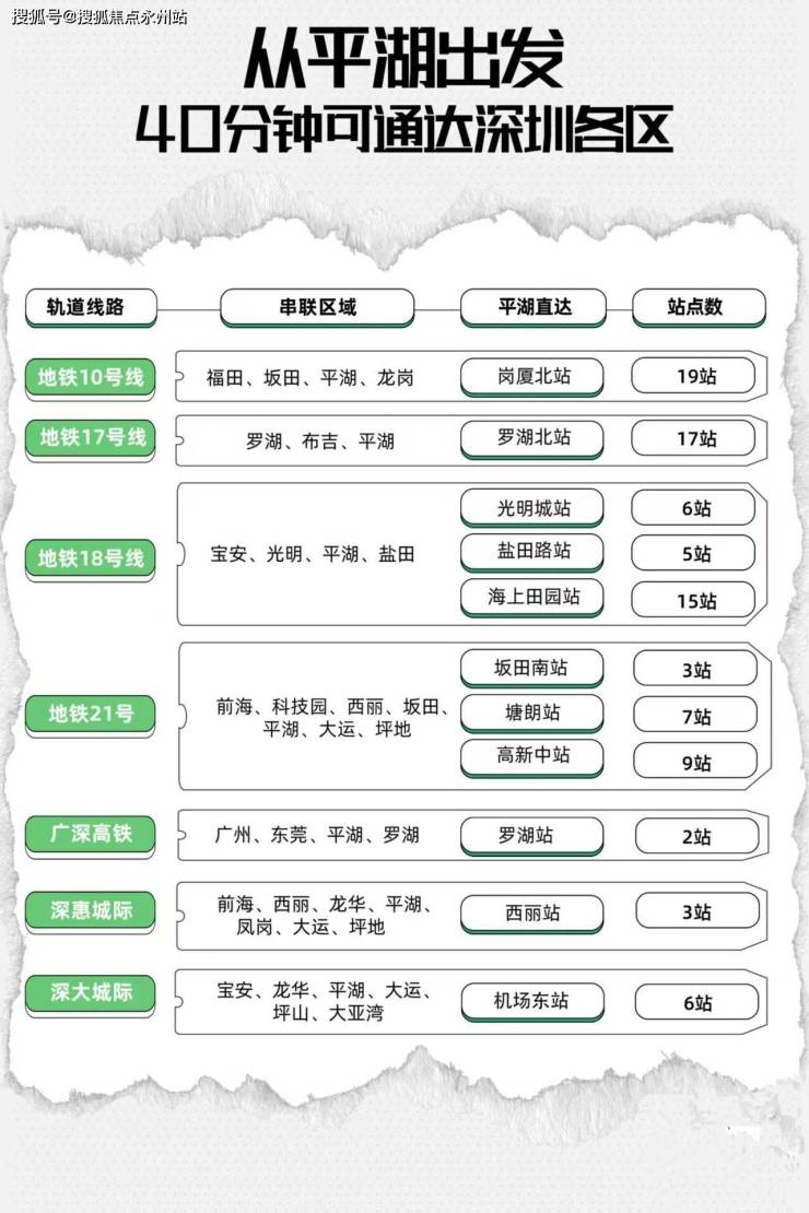 深圳布局了14个综合交通枢纽,平湖站升级为深圳的8个高铁枢纽之一,“1高铁、2城际、3地铁、4快速路”的配置,让平湖枢纽跻身为继福田、罗湖口岸、深圳北站之后的深圳第四大交通枢纽中心(平湖白泥坑还规划有深大城际线路)