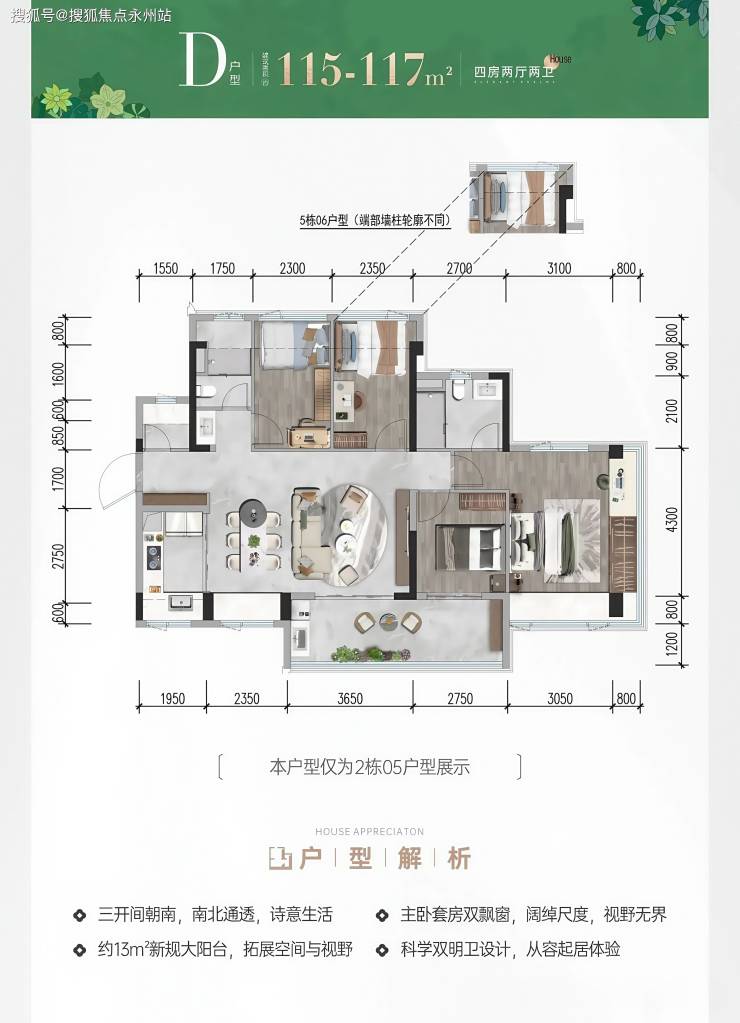适合人群:改善型家庭,三孩或三代同堂,兼顾舒适性与功能性。
