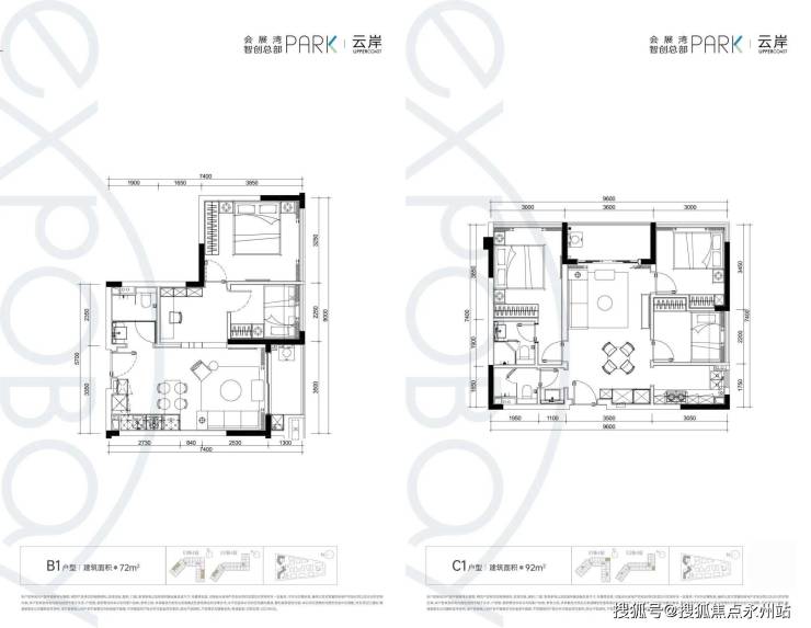 92-97㎡三房两厅两卫:正南朝向,端头位设计,双面采光,主客分区清晰,部分户型可瞰河景,空间宽敞舒适,适合多人口家庭自用或高端商务出租。