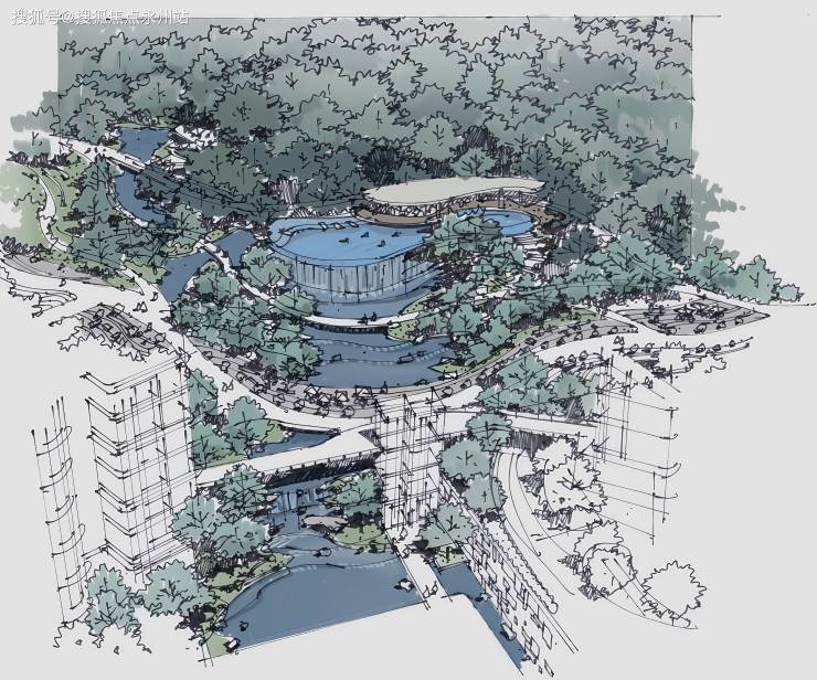 项目特特邀世界豪宅专家CCD郑中设计执笔,秉持“引龙下山 引水入园”的理念,借周边自然景观,通过园林景观和层叠水系,造就与自然平等相处的“流水森林”,呈现山居生活的悠然从容。