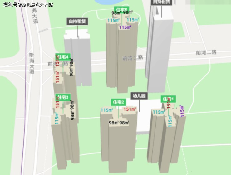 而1-3栋为自持租赁房共44F,由招商持有并出租。住户共占40层,每层4梯14户,户型为35㎡单间-55㎡一房一卫户型,此栋单独设有临街出入口。