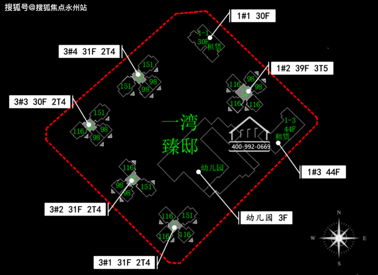 30-31F左右的楼栋(3-1/3-2/3-3/3-4栋)是2梯4户的设计,1-2栋39F是3梯5户设计。招商·壹湾臻邸_Vip Tel:400-992-0669 中介勿扰