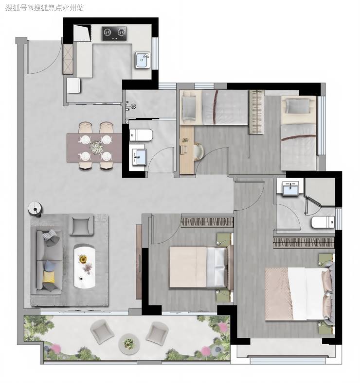 二孩家庭:99㎡三 + 1 房:东南朝向,主卧套房 + 灵动空间,满足全周期需求。