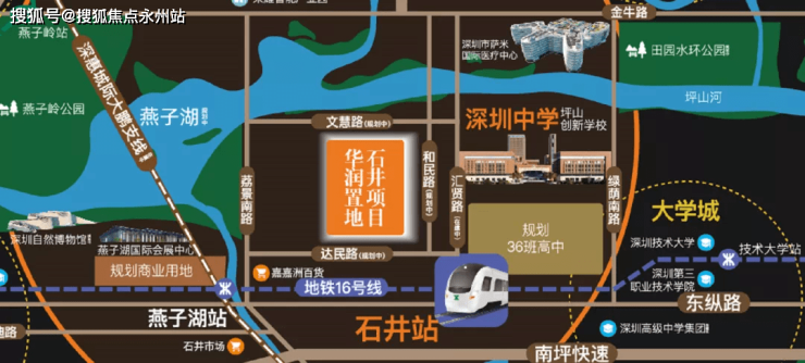 地铁16号线:连接大运新城、龙岗中心城、双龙、坪山高铁站及坪山新区等地区是东部组团内部的轨道线路。