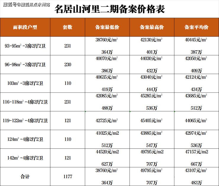 龙岗永湖『名居山河里二期』于2024年3月4日取证入市,推出1177套房源,面积93-95-98-103㎡的3房2厅2卫,116-124-142㎡的4房2厅2卫户型,备案均价4.31万/㎡,备案单价3.87-4.98万/㎡,总价364-707万/套,计划于2025年6月份带德系精装修交房,全屋配置大金中央空调,西门子厨房3件套。(深圳名居山河里售楼处电话:400-992-0669)