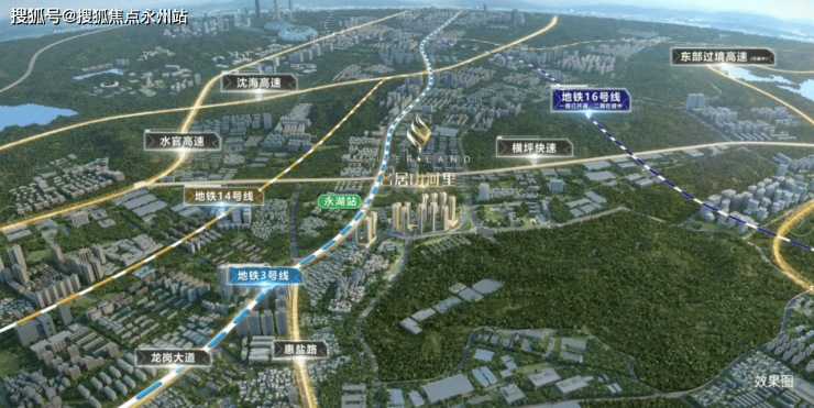 名居山河里,位于龙岗区园山街道3号地铁线永湖站东南侧150米,地处龙岗黄金三角地带,北邻大运新城,东侧是阿波罗未来产业城,西南侧是横岗中心片区。