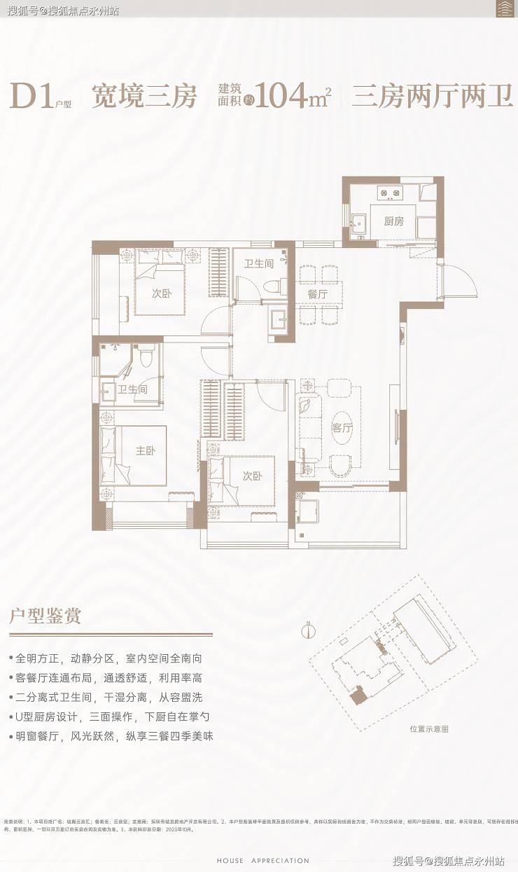 建面约 104㎡ 三房两厅两卫(D1 户型)