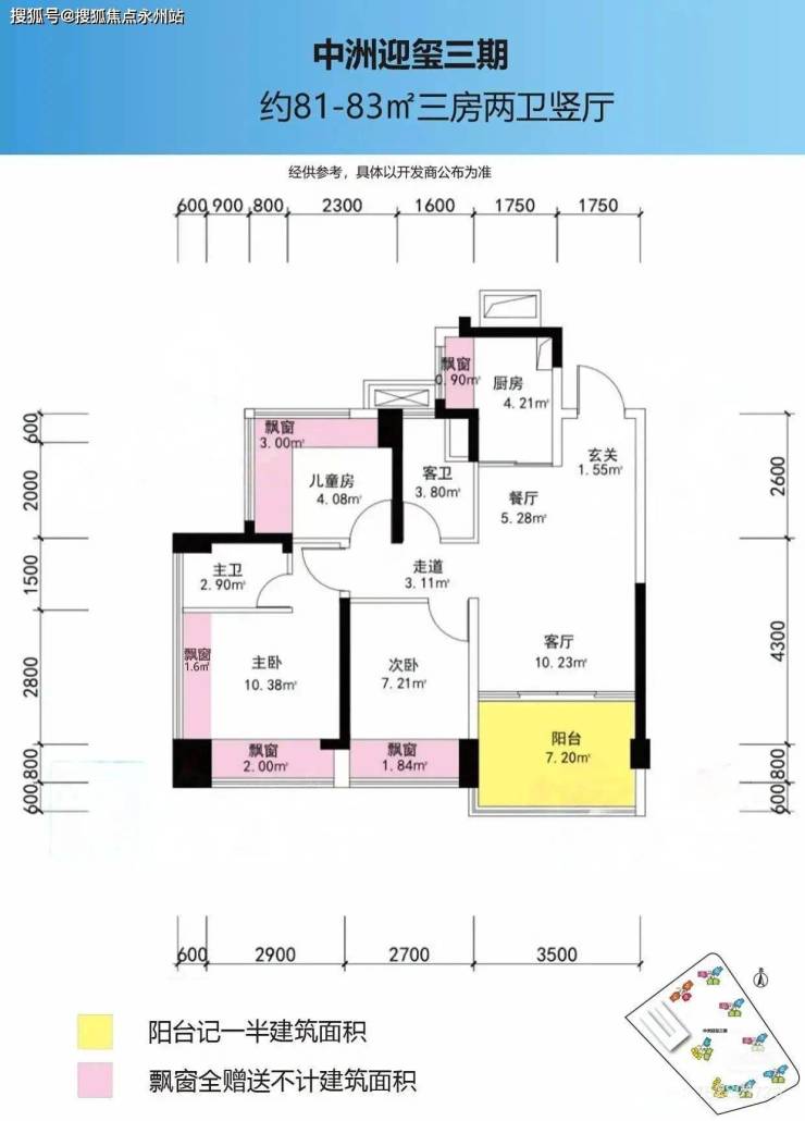 项目三期户型改为新规后,阳台+飘窗赠送大大加大,接近95%-100号使用率,对比一期二期使用率上是比较大的突破!目前样板已经完工,已开放。