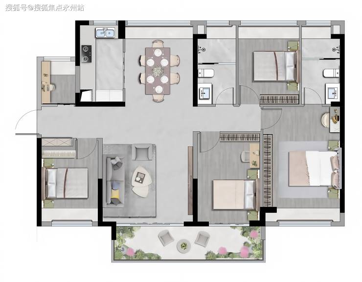 三代同堂:140㎡四 + 1 房:南北通透,6.6 米阳台,景观资源最佳。