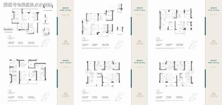 汉园茗院A区户型以改善型产品为主,户型面积包括109-112㎡三房两厅两卫、121㎡四房两厅两卫、157-159㎡五房两厅三卫和168-169㎡五房两厅三卫。