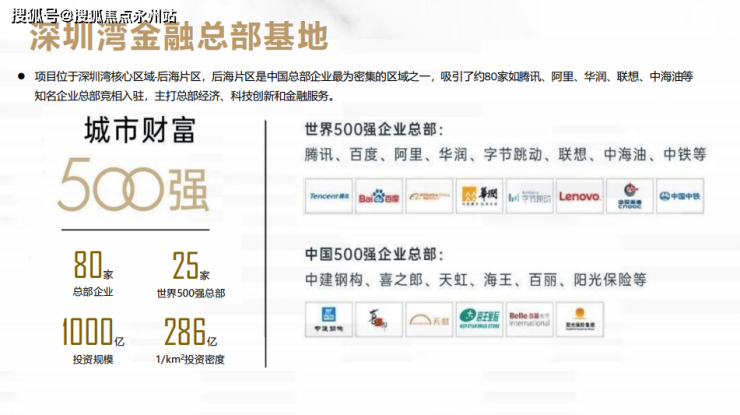 项目位于深圳湾核心区域-后海片区,后海片区是中国总部企业最为密集的区域之一,吸引了约80家如腾讯、阿里、华润、联想、中海油等知名企业总部竞相入驻,主打总部经济、科技创新和金融服务。(深圳南山深湾华府售楼处电话:400-992-0669)