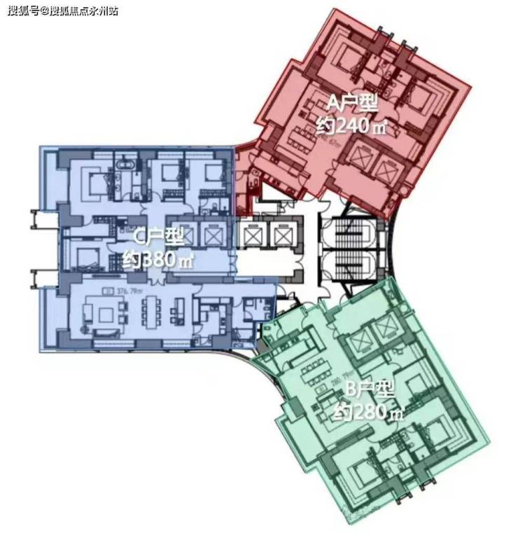 【深业世纪山谷】建筑面积约240-280-380㎡的3-5房户型