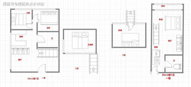 35㎡两居室:设计为两室一厅一卫,带阳台,通燃气,精装修交付