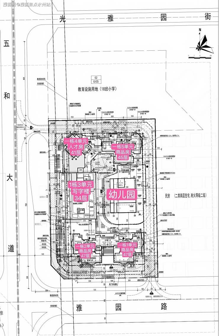 其中,1栋1、2单元为47层住宅,5单元为45层住宅,约615套住宅(含50套回迁房), 1栋4单元为41层人才房,共180套人才房,1栋3单元为34层写字楼;2栋规划为3层幼儿园。