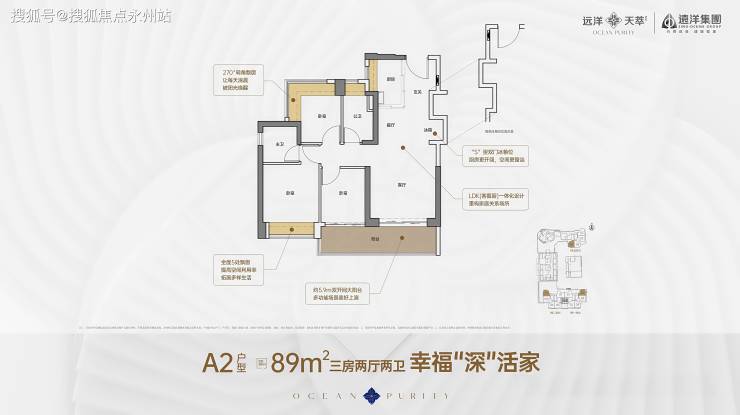 阳台:客厅连接次卧,打造5.9米长的大阳台,视野开阔。