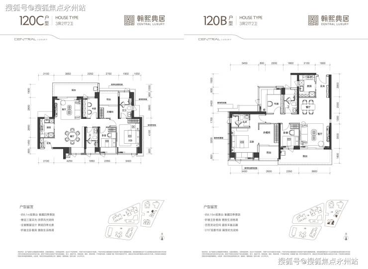 120㎡3+1房2卫:主卧套房超30㎡,可改灵动空间,折后总价约1038万起(单价 8.6万起)。