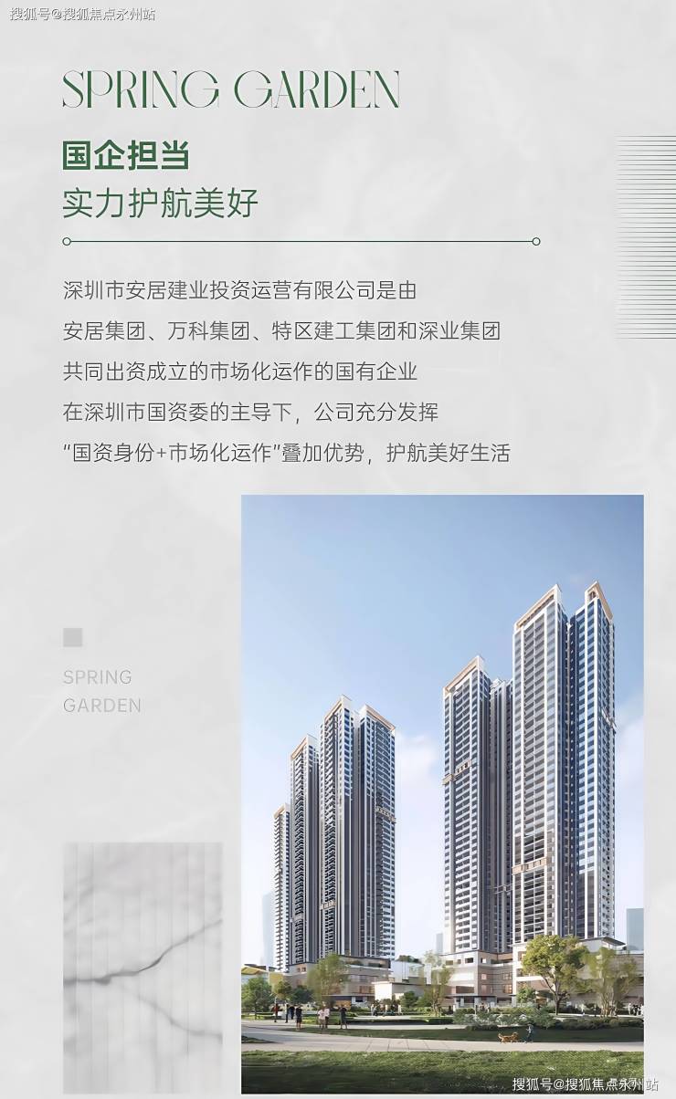 项目也是安居建业集团在深圳打造的第2个楼盘,第一个楼盘是位于龙华上塘的塘城NEXT TOWN,也是待开盘阶段,安居建业是由政府牵头专门为保交楼而成立的新公司,属于国资企业。(深圳坪山春和府售楼处电话:400-992-0669)