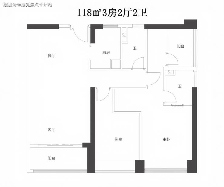 118㎡3房,单价10.8万/㎡起,总价约1280万起