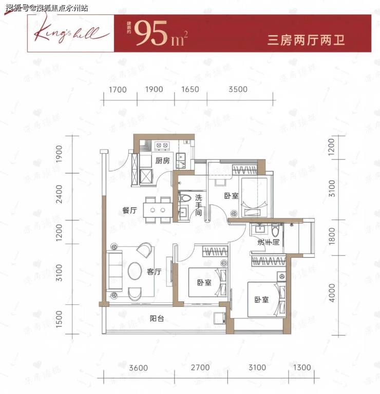 89-95㎡:舒适三房/四房,横厅南北通透,主卧双飘窗,得房率100%。