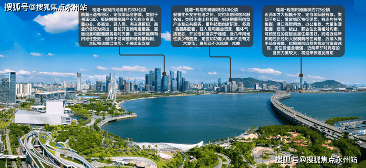 狭义上的前海核心区单指桂湾、前湾、妈湾三个板块,桂湾定位国际金融城,突出办公、商业、金融产业;前湾定位科创和综合服务城,突出政务、市政配套、科创产业;妈湾定位国际服务城,突出人居、生活配套、商贸产业,目前桂湾开发饱和度最高,前湾次之,妈湾片区最低。