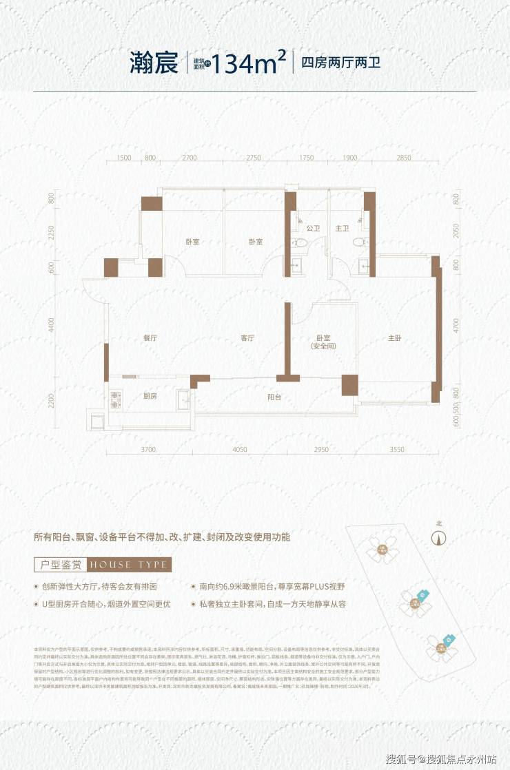 终极改善:134㎡ 4房2卫(总价约700万级)大尺度、高使用率、南北通透、双阳台。