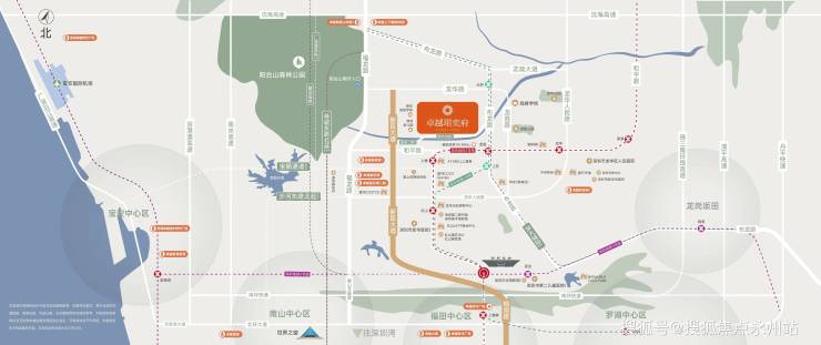 自驾交通:紧邻布龙路、福龙路等城市主干道,通过新区大道7个红绿灯到福田,侨城东路北延线(在建中)建成后可快速连接南山、科技园,节省约20%通勤时间。