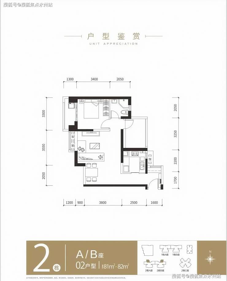 82㎡两房一卫丨总价:467万-475万丨单价:约5.6万-5.7万/㎡