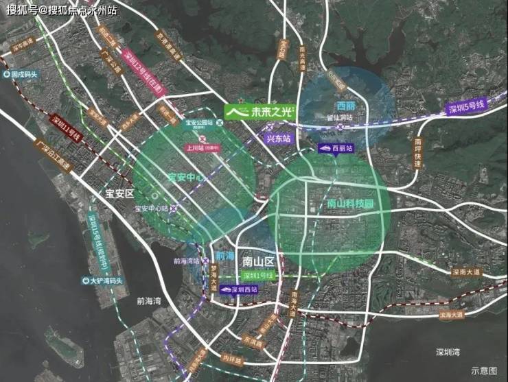 交通:三条地铁线交汇,距离现行的5号线兴东地铁站1.2公里左右,今年预计通车的12号线1.9公里左右,建设中的15号线800米左右哈。万科致力于解决最后一公里的问题,在未来之光建设最美公交首末站,三条线路一条去往南山科技园,一条去往宝中,一条经西丽去往福田。