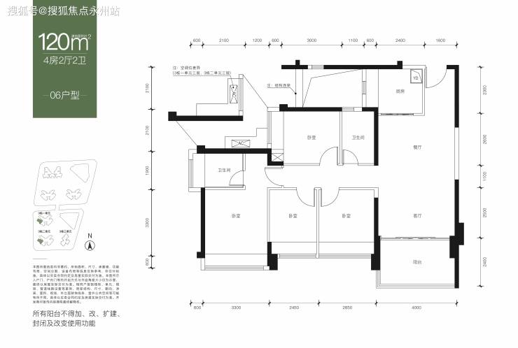 120㎡4房2卫:分别是3栋1单元和2单元的06户型。