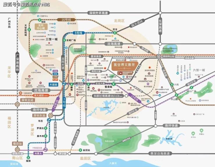 16号线坪山站 :坪山站升级“坪山综合交通枢纽”,16号线、高铁、深大城际(宝安机场——坪山,在建)三轨交汇;