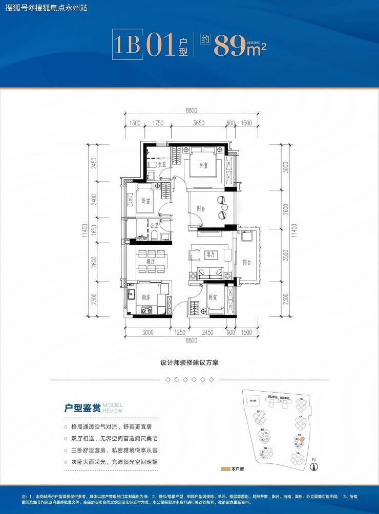 89㎡四房两厅两卫:折后总价317万起,单价3.56万/㎡起。