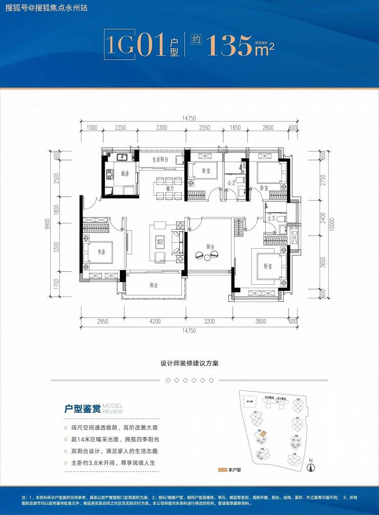 终极改善之选:楼王级配置,作为1E栋03户型,四开间朝南,客厅开间4.2米,南北双阳台设计,正南向直面约2万㎡中央园林与明湖城市公园,景观视野无遮挡。套内107.5㎡+赠送21.81㎡,实用面积达129.31㎡,主卧套房面积达25㎡,带独立衣帽间与卫浴,可定制双台盆与浴缸。