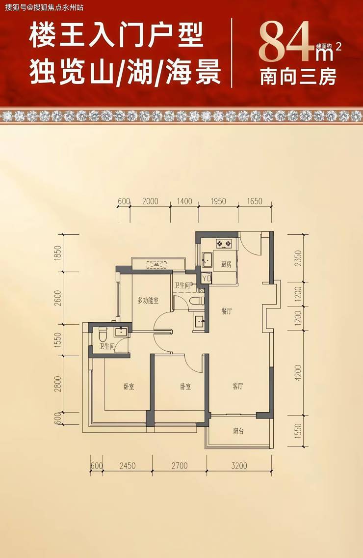 84㎡三房两卫,单价约4.5-4.8万/㎡,总价约378-405万。